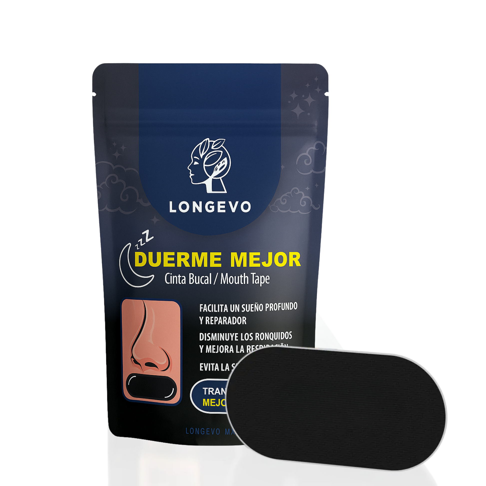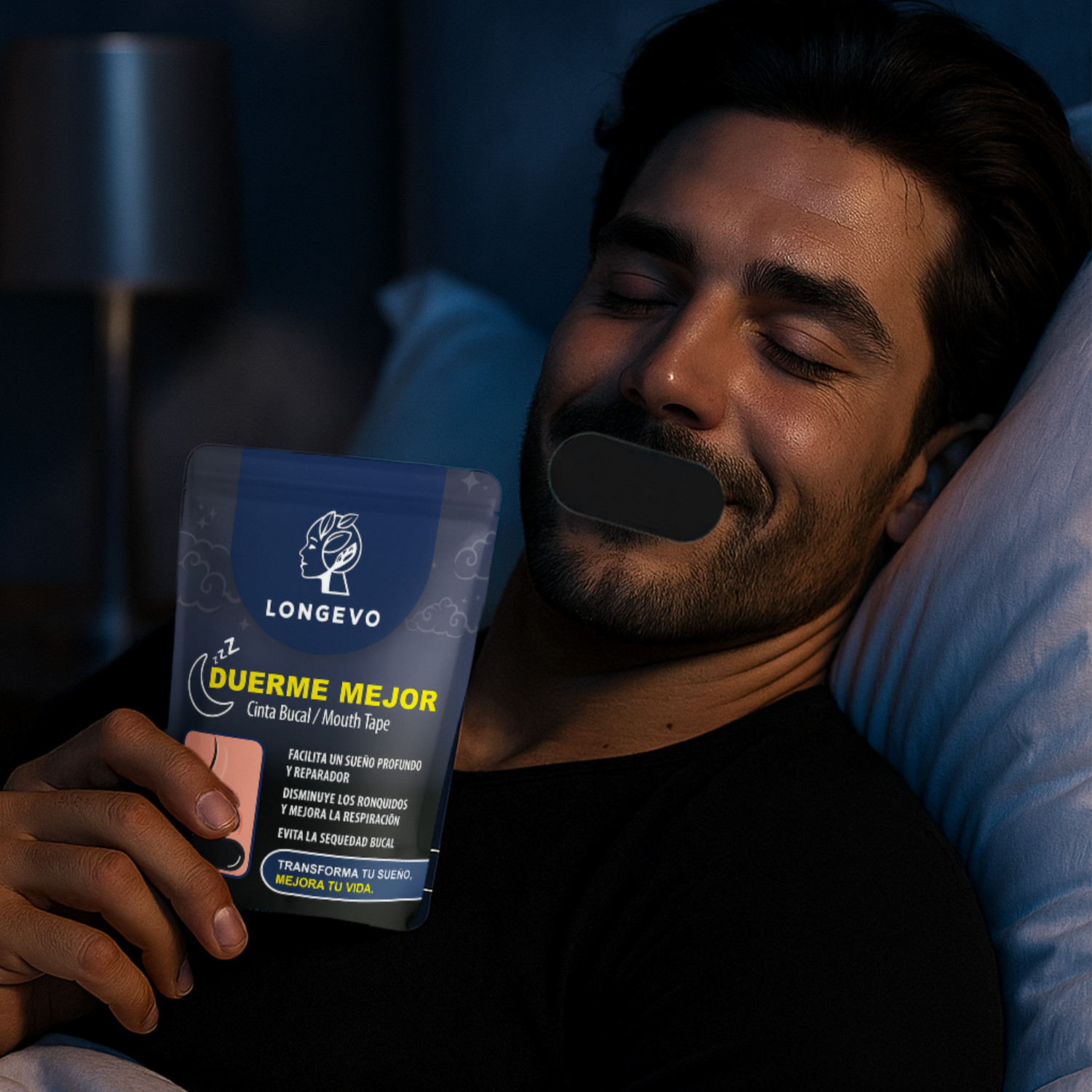 La cinta bucal Longevo® ha sido diseñada para optimizar tu respiración nocturna y transformar la calidad de tu descanso. Al promover la respiración nasal, ayuda a reducir los ronquidos y evita la sequedad bucal, facilitando un sueño más profundo, reparador y natural.