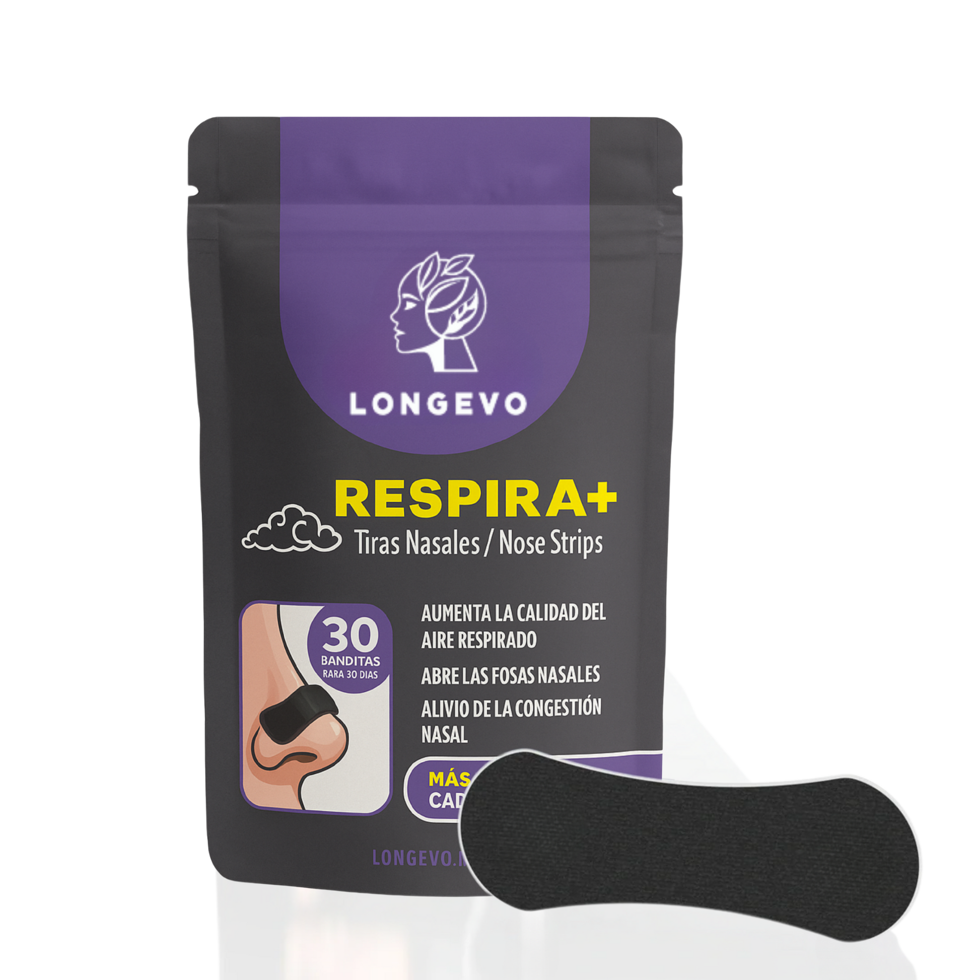 Las tiras nasales Longevo Respira+ están diseñadas para abrir suavemente las fosas nasales y mejorar el flujo de aire con cada inhalación. Ideales para quienes buscan dormir profundamente, aliviar la congestión o dejar de respirar por la boca por las noches.